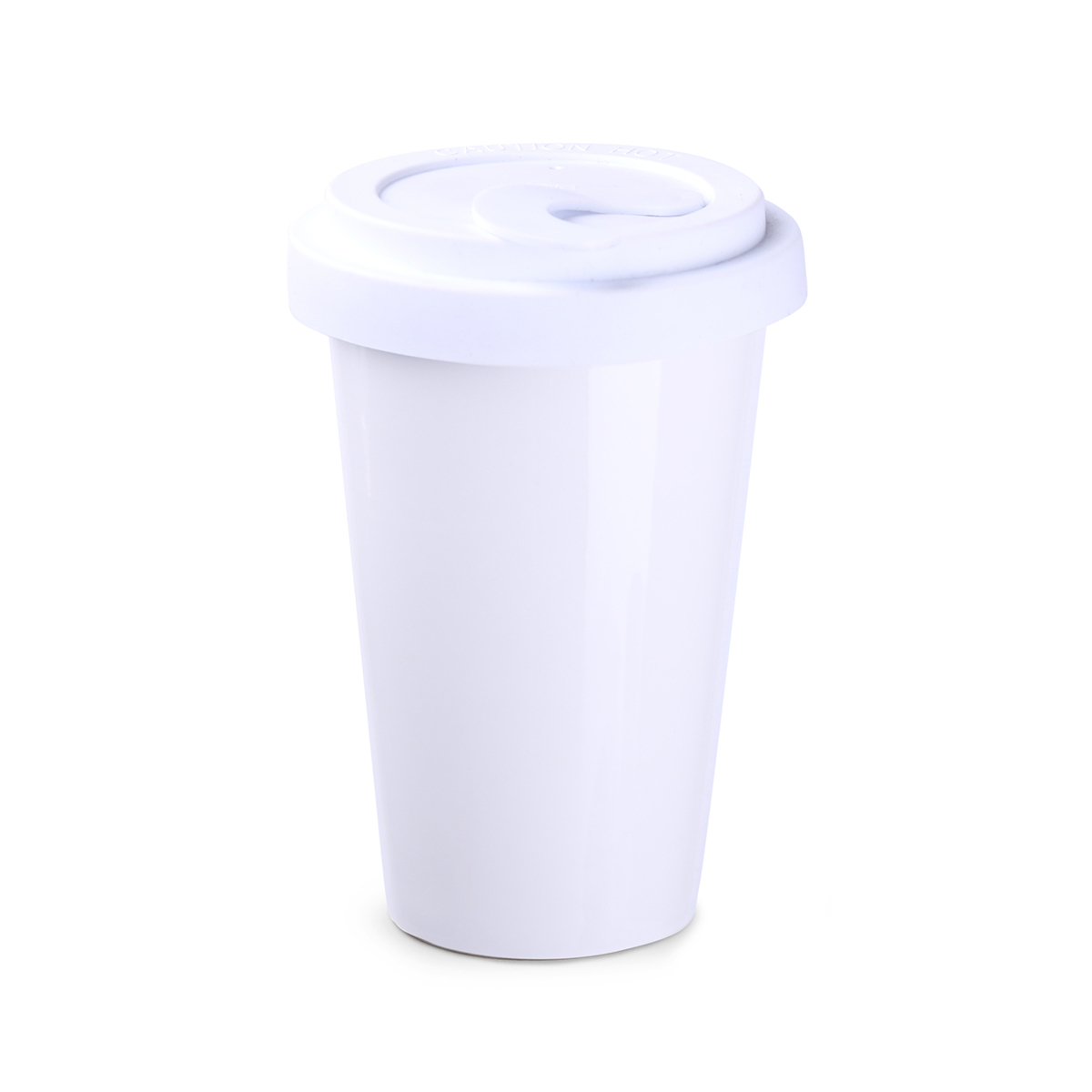 Porcelanowy kubek reklamowy z polimerową przykrywką chroniącą przed przypadkowym rozlaniem napoju. Model skierowany dla osób aktywnych, miłośników wycieczek i podróży. Dzięki rzadko spotykanej, wewnętrznej strukturze podwójnych ścianek z porcelany kubek ten charakteryzuje się podwyższonym poziomem izolacji termicznej. Przykrywka dostępna jest w 8 kolorach: biały, pomarańczowym, czerwonym, zielonym, granatowym, brązowym, czarnym i szarym.